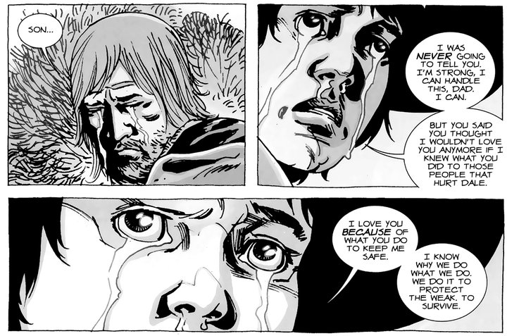 I'm not big into comics. I still haven't read Sandman or Transmetropolitan yet. I just now finally caught up with The Walking Dead. 77 fucking issues, and it was totally worth it. This series is probably the best I've read so far. Maybe that'll change after I read more than only Walking Dead, Watchmen, and some Batman, but that's where I stand right now.