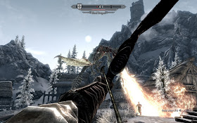 And the great thing is, if this stuff seems boring or nerdy, you don't have to pay attention to any of it if you don't want to. You could just wander around killing people and be a dick and ignore the story entirely. And sometimes that's exactly what I do. And Skyrim makes it very easy to do such things, because you are Dovahkiin, Dragonborn. You wield the magic that dragons use -- shouts -- which don't use mana like typical magic, there's simply a 15-30 second cooldown. The first time I acquired Fus Ro Dah, this is what I spent an hour doing.