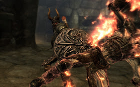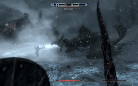 It's the little things like that that make the game. And the history is really interesting too. Going through the game, you'll see a lot of racial tension between the Nords and the Elves. If you never opened an in-game book, you'd never understand why. All humans in Tamriel are descended from the Nords of Skyrim. Led by Ysgramor, the humans originally landed in Skyrim from some vague continent way up north, fleeing a civil war. The Elves were already living in Tamriel. The Nords and the Elves initially lived peacefully, but the Elves got scared because they thought the Nords would eventually become too powerful. So they waged a war of extermination, and when they burned the last human city to the ground, only Ysgramor and his family survived to flee back to their continent. When they returned, the civil war was over and there was peace. So Ysgramor gathered up an army, sailed back, and conquered Skyrim.