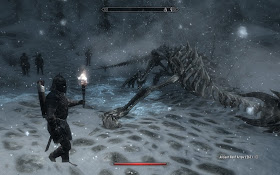 The main plot of the game is that dragons are coming back. They went extinct centuries ago, and nobody knows why they've returned. As Dovahkiin, you sort of become their main target, since you are the only one capable of stopping them. Once you reach a certain point early on in the story, dragons will start attacking you in completely random places at completely random times. They could attack you when you're wandering on the road, or they could attack you when you're in a city. You're not safe anywhere. Okay, tired of reading? Wanna see some gameplay? Watch what happens out of fucking nowhere when this guy starts fucking with some giants and their mammoth herd. This is completely unscripted.